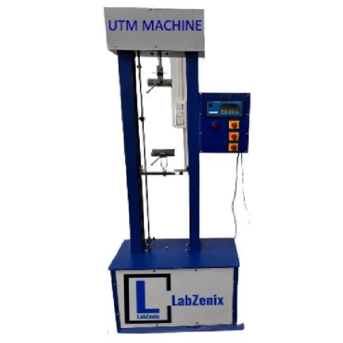 Mild steel universal testing equipment with 5000Kgf capacity. Operates on 230V single-phase power. Suitable for testing wire, plastic, and other product strength with high accuracy.
