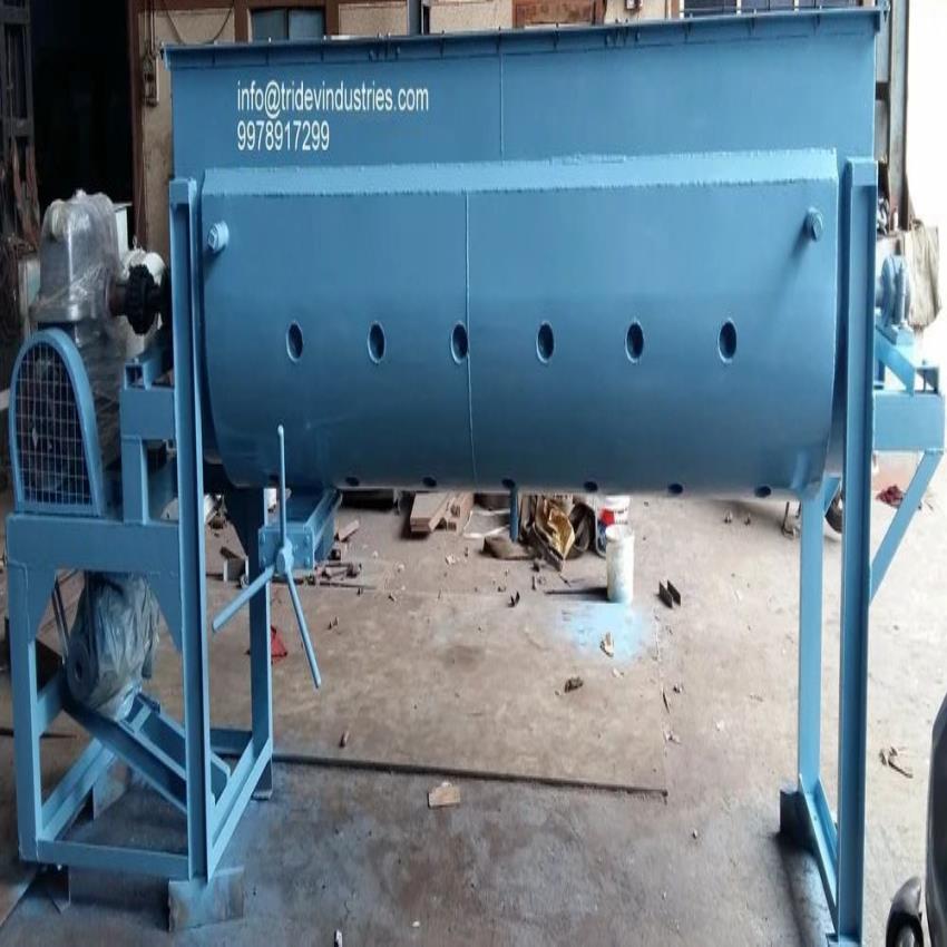 Automatic 5000 liter mild steel paddle mixer. 3-phase, 440V operation. Blue color, 12-month warranty. Made in India.