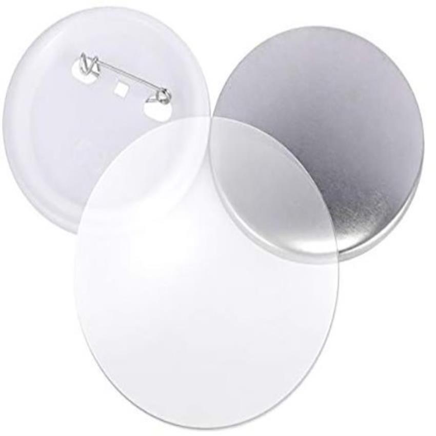 Round plastic badge material, 58mm size. Features a plain surface finish in white and black. Non-customized. Packaged in plastic. Minimum order quantity: 2000.