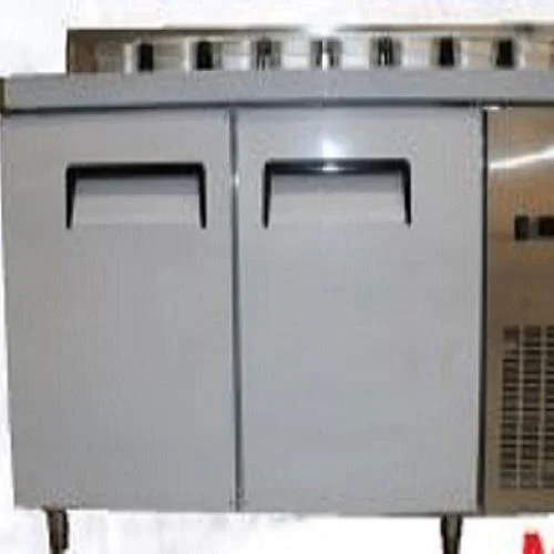 SS Pizza Make Line, 6 ft long, with 2 doors and 1 shelf. Accommodates 7 GN pans. Operates on 220-230V.