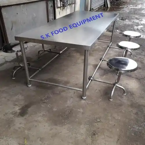 Durable 6-seater canteen table constructed from high-quality stainless steel. Ideal for food service areas. Made in India.
