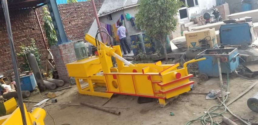 Semi-automatic mild steel hydraulic scrap baling press. Features 2 cylinders, 12kW power, 15HP motor, 2000psi working pressure. Ideal for industrial applications.