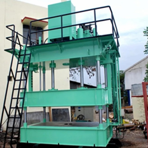 Fully automatic mild steel composite hydraulic molding press machine with 600 Ton capacity. Features 4-pillar design and 1500x1000mm mold dimensions. Made in India.