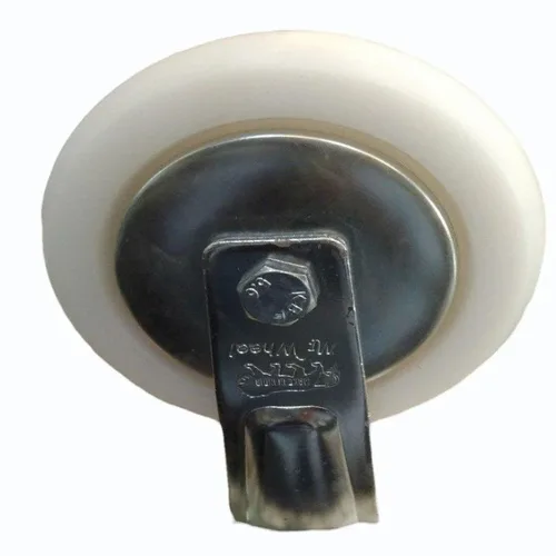 6x2 inch nylon wheel with swivel movement. Features white color and a load capacity of 500 kgs, suitable for trolleys and carts.