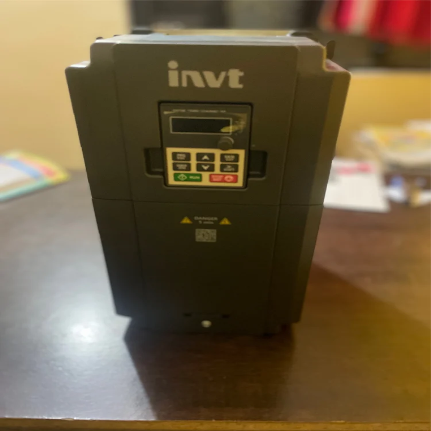 7.5 HP Invt three-phase AC drive for industrial machinery. Features 380V input, V/F control, and is designed for servo motor applications.