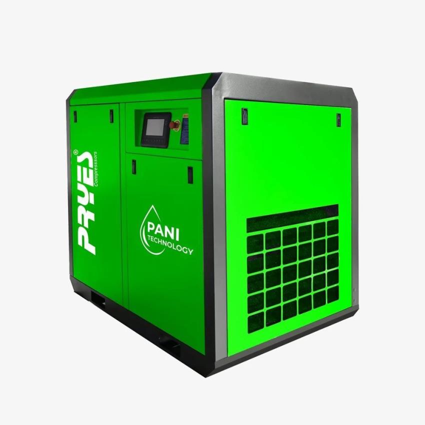 75 HP oil-free, water-lubricated screw air compressor. Class 0 air quality, 8 bar discharge pressure, and 121-500 cfm flow rate. Features water-cooled system and 1000L tank.