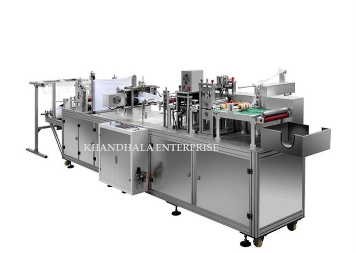 7kW non-woven surgical cap making machine. Produces 40-50 pieces per minute. Single-phase operation, weighing 1350 kg. Manufactured in India. New units available.