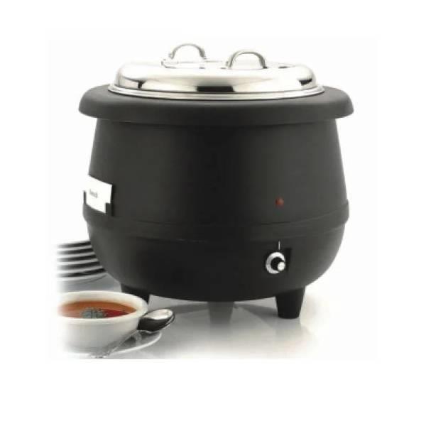 This 7-liter electric soup tureen is constructed from steel. Operates on 220V/110V power, making it versatile for various commercial settings. Ensures efficient and safe food warming.