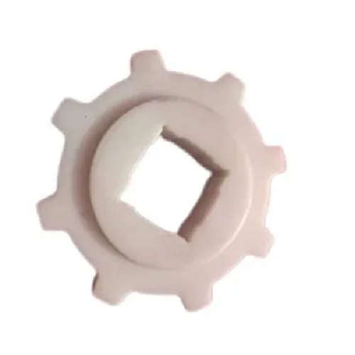 Plastic conveyor sprocket with 8 teeth. 22mm thickness, simple taper roller type. White color coated finish for industrial applications.