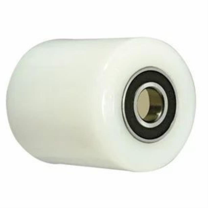 Durable white rolling wheel, 100x80mm. Suitable for various applications requiring smooth movement. Made from robust materials for extended use.