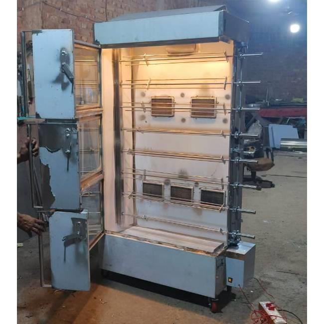 Nine-rod chicken grill machine for commercial use. Designed for efficient grilling of multiple chickens simultaneously. Durable construction for high-volume kitchens. Professional cooking equipment.