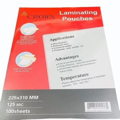 A4 size laminating pouches for document protection. Provides a clear, durable finish to preserve important papers.