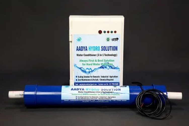 Domestic automatic water softener for borewell water. Maintenance-free, no salt/chemicals needed. Capacity 1000-75000 LPH. 3-year warranty, 15 Kg weight. Made in India.