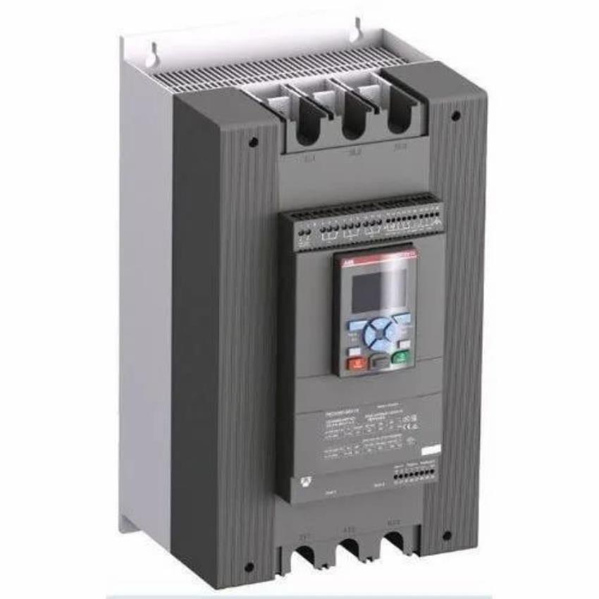 ABB three-phase soft starter, 415VAC, suitable for 40HP to 250HP motors. Operates at 50/60Hz, with 12 months warranty. Optimized for industrial applications.