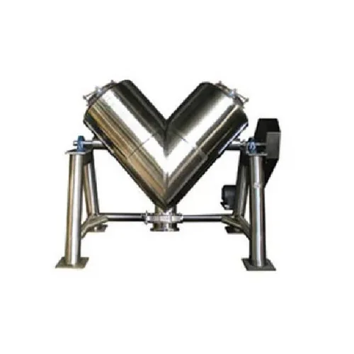 Y Blender Machine for abrasive mixing in silica industries. Features SS contact parts, MS body, 50-1000 kg batch capacity, and 1.5-12 HP motor.