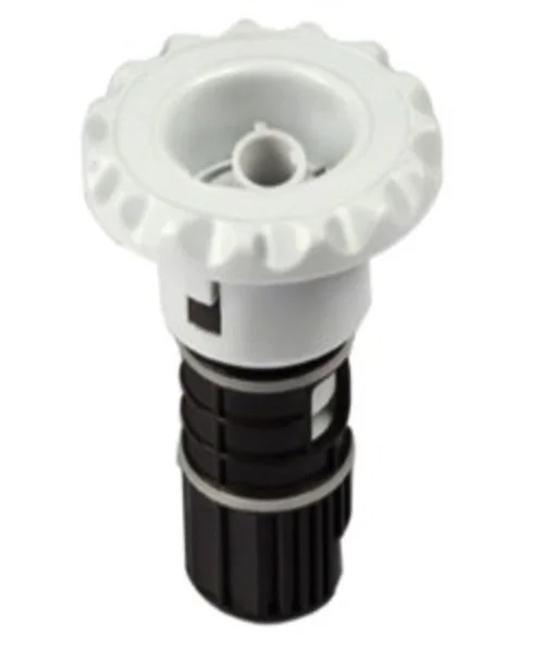 Round ABS swimming pool jet in white and black. Features 1/8 inch BSPT thread size and operates up to 6 bar pressure. Designed for standard swimming pool applications.