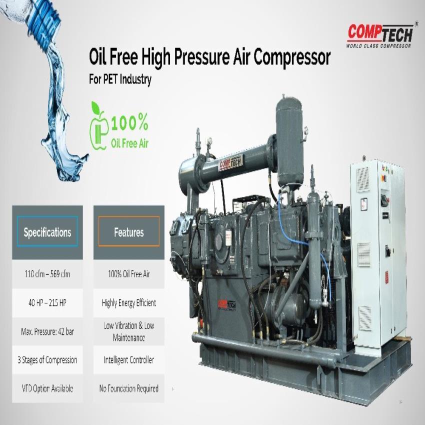 AC Three-Phase Oil-Free Air Compressor, 42 Kg Discharge