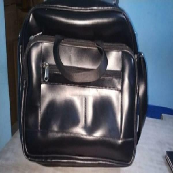 Durable black tool bag designed for air conditioner technicians. Features multiple compartments for organized storage of essential tools. Ideal for professional use and on-site maintenance.