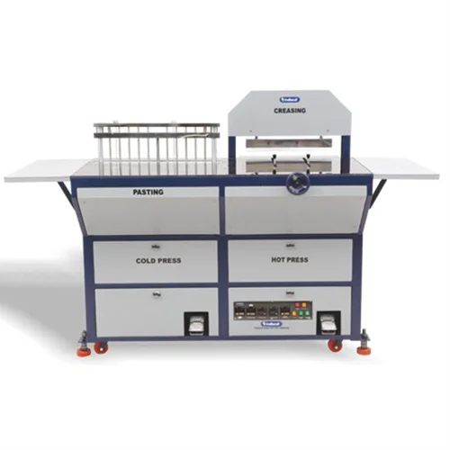 This electric pasting machine operates on 5 kW/KVA with a 220V supply. It measures 55 inches high, 39 inches long, and 60 inches wide, weighing 250 kg.