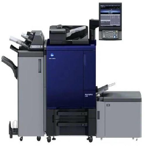Konica Minolta Accurio Press C3070 P digital press, 71 PPM speed. Features 2400x1200 max resolution and supports up to 350 GSM paper weight.