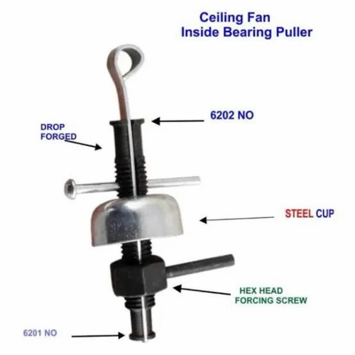 Manual fan bearing puller with adjustable arms for 6201/6202 bearing sizes. Ensures efficient removal of fan bearings with simple manual operation.