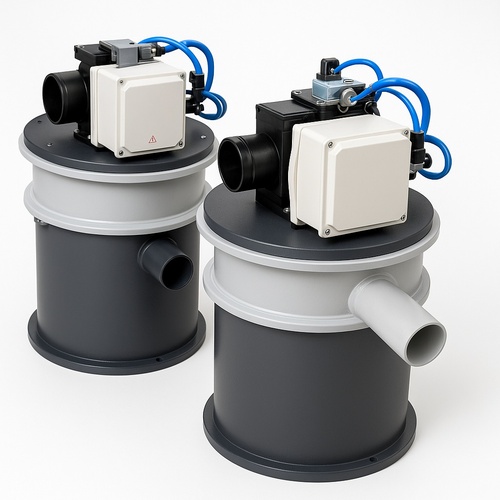 Automatic vacuum hopper machine, three-phase, 240-380V operating voltage, electric power source. Operates at 50/60 Hz frequency. Ideal for automated material transfer.