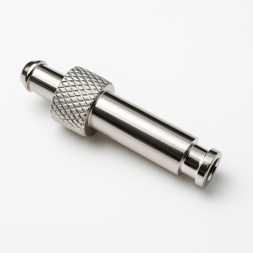 Adult brass connector for NIBP cuffs. Features silver chrome and nickel plating for durability. Securely attaches to hospital equipment for accurate blood pressure monitoring.