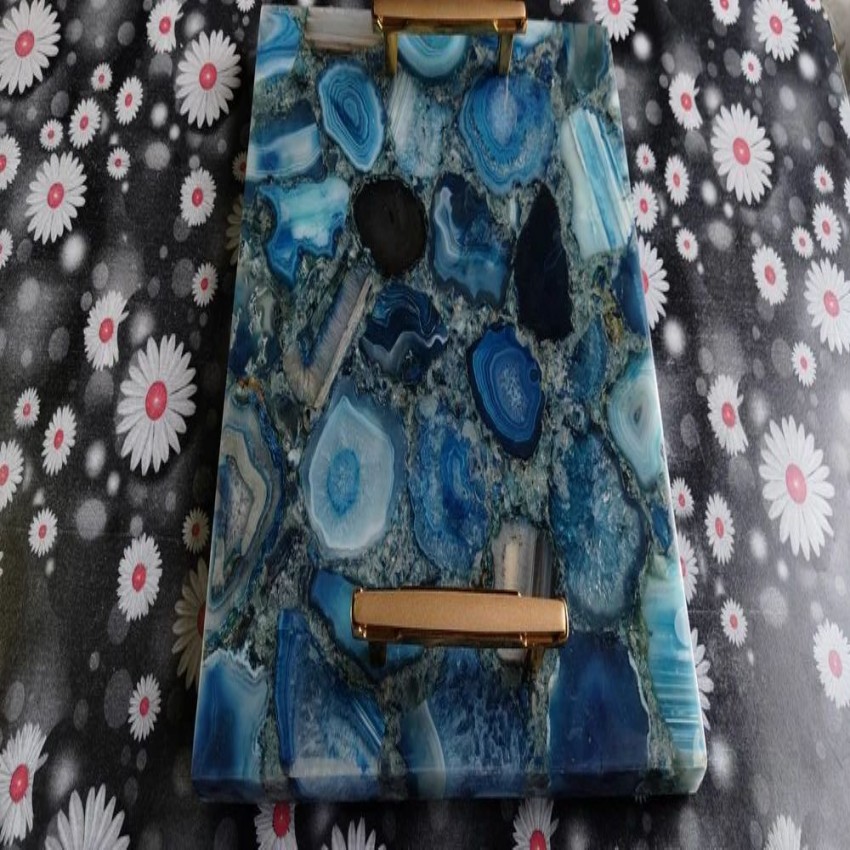Rectangular agate stone decorative serving trays, 12 inches long. Set of 3 plain, in-stock pieces made in India. Perfect for restaurant use.