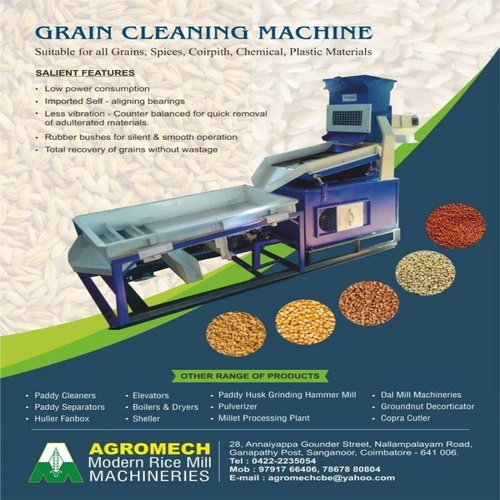 Semi-automatic grain cleaning machine with 2-5 HP motor, 220V/380V voltage, 50Hz frequency, and 1000-1500 RPM motor speed for efficient processing.