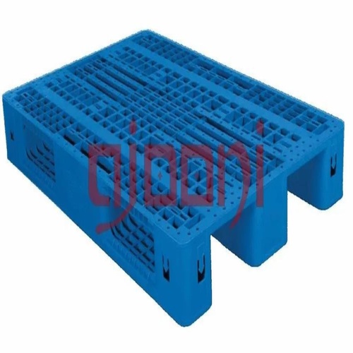 Mild steel pallet, 1000 mm x 1000 mm, blue color. Suitable for multi-tier rack structures and storing non-edible products. Durable construction.