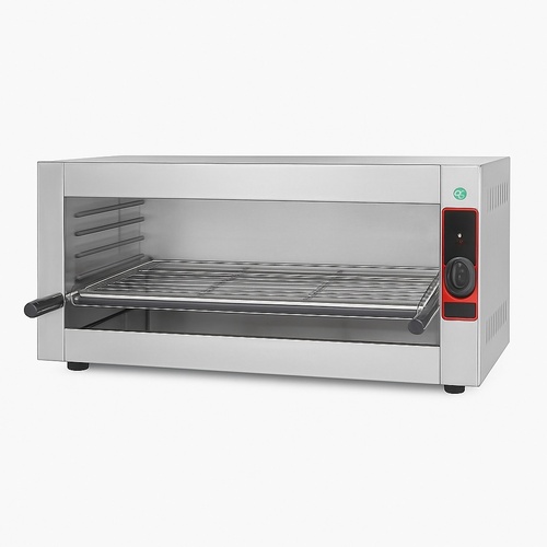 Stainless steel commercial electric griller, 26x19x13 inch, 3000W. Features 3 adjustable positions and 2 grills. Designed for hotel use.