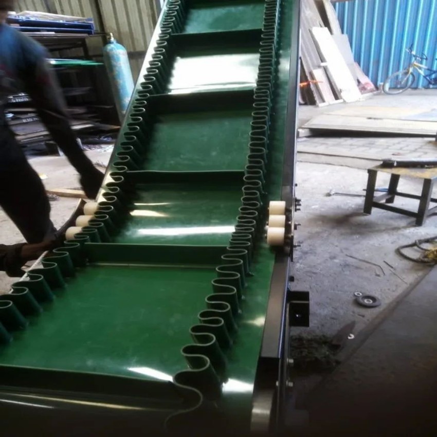 ALAN Inclined Cleat Belt Conveyor with Natural Rubber and PVC belt. Ideal for Pharma, Packaging, and Coal applications. Made in India for reliable material handling. Durable and efficient.