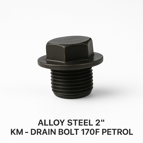 Alloy steel drain bolt with 2" diameter and length. Designed for 170F petrol weeder engines. Round head type, washer not included.