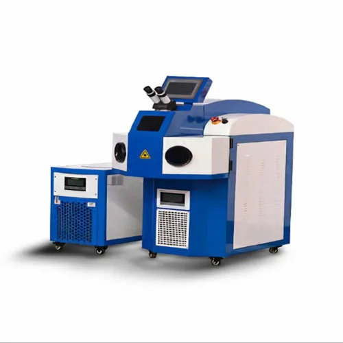 Automatic aluminium jewellery laser welding machine. Features 150W power, 0.2-2.0 mm beam range, water cooling, and 380V power requirement. Ideal for precise fabrication.