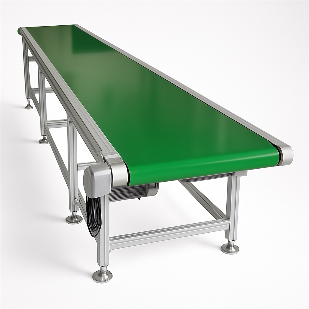 Automatic aluminum packing belt conveyor. Features adjustable speed (1-2 m/s), horizontal orientation, 10-20 inch belt width, and operates on electric power (300-600V).