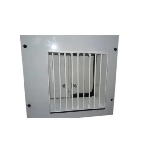 Rectangular aluminum damper for fire control applications. Features coated surface finish and operates on 220-240V, 50-60 Hz.