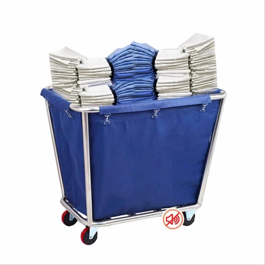 This foldable aluminum soiled linen trolley, size 900 x 650 x 850 mm, is designed for hospital use. Made in India, it features a blue color and is available for new purchases.