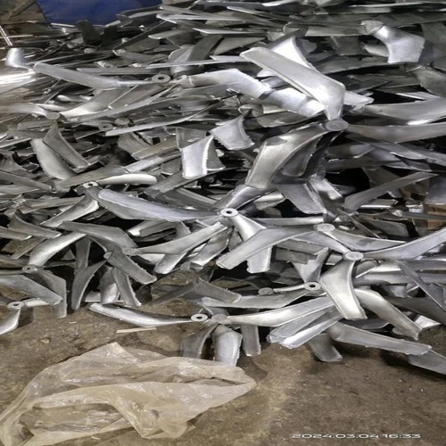 Set of 3 aluminum fan blades, silver color, for industrial pedestal fans. Blade sizes range from 450mm to 600mm. Made in India. Minimum order quantity 1000 pieces.