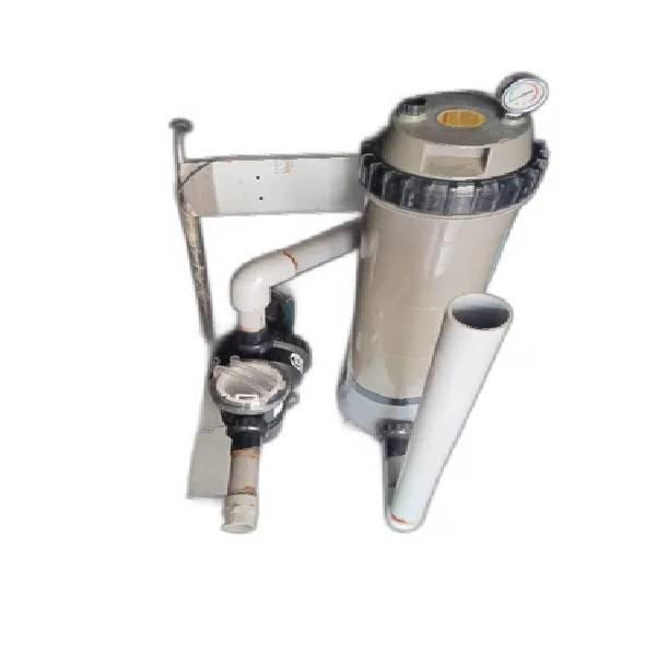 This cylindrical, white cartridge filter features an aluminum mesh filter type (Suction Filters) and includes a pump for water filtration applications. Made in India.