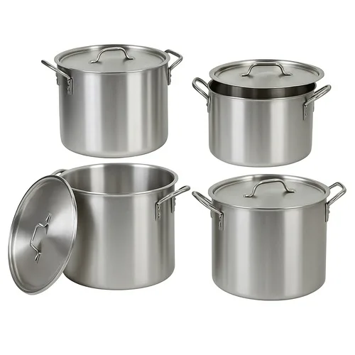 Round aluminum stock pot with a thickness of 6-15mm. Durable construction ensures even heating and longevity. Suitable for various culinary preparations.