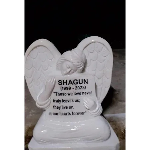 An 18-inch angel stone sculpture. This decorative piece is made from stone, offering a detailed artistic representation. Suitable for display.