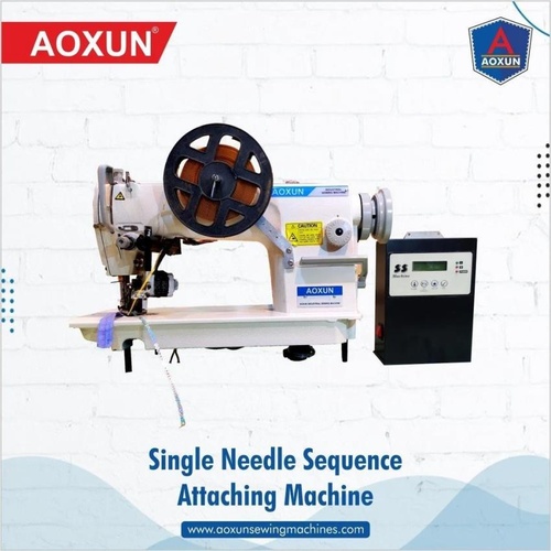 Automatic motor-operated machine with a single needle and thread. Achieves 4000 stitches/min with a 4mm max stitch length. Features 2-year warranty.