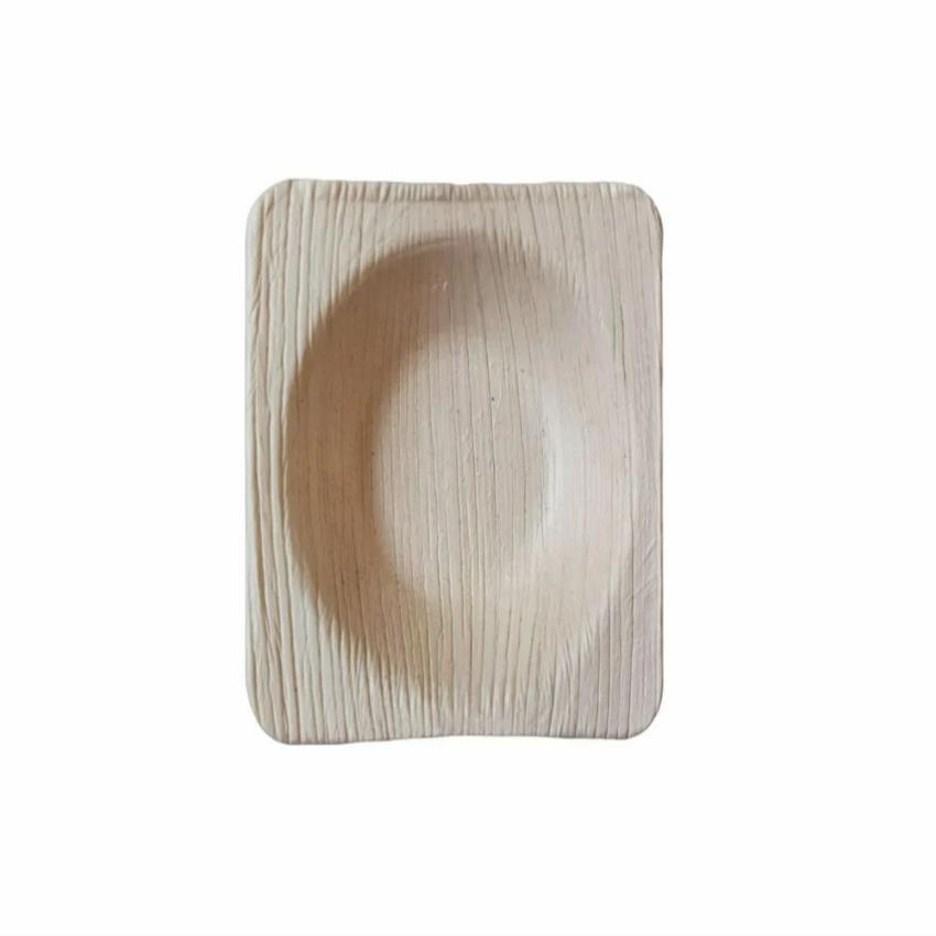 100-piece pack of plain Areca Leaf sauce bowls. Each bowl measures 2 inches, with a 1cm depth. Ideal for serving sauces. Minimum order quantity is 10,000 pieces.