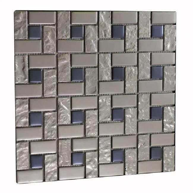 Decorative square glass mosaic panels with random color mix. Features 0% water absorption and a weight of 1.5 Kg/Sqr Feet. Available in combination of different sizes.