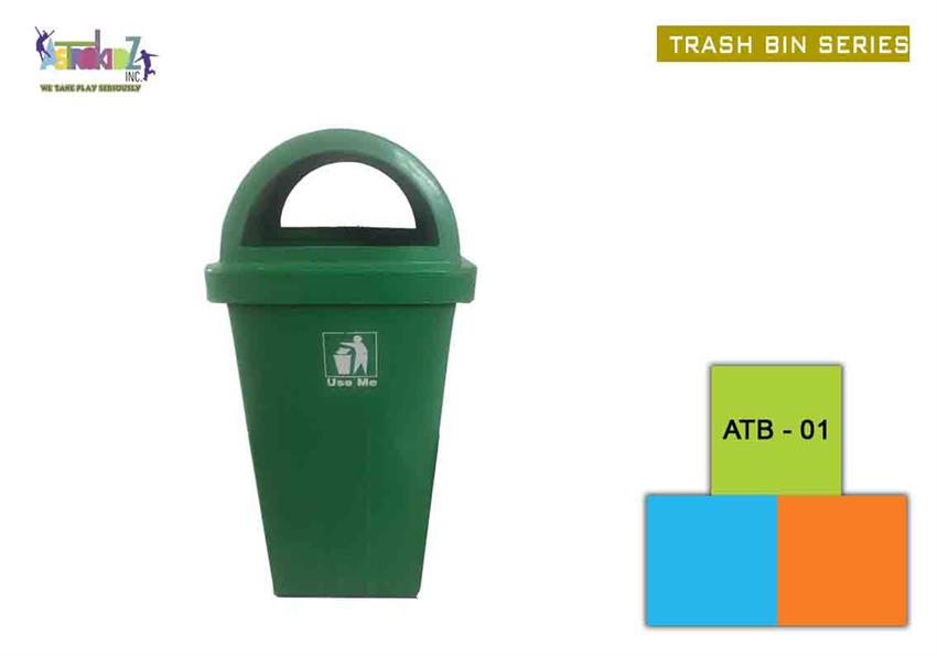 Fiber Reinforced Plastic (FRP) bin model ATB-01 in green. Designed for outdoor use in playgrounds, schools, parks, hospitals, and gardens.