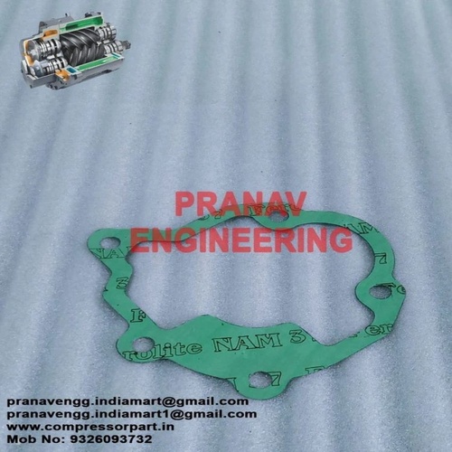 Green rubber gasket for Atlas Copco screw compressors in the automobile industry. 5 mm thick, air-cooled. Made in India.