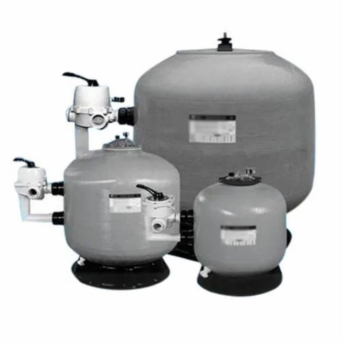 Automatic metal body swimming pool filter, gray in color, powered by electricity for commercial swimming pool applications. Ensures efficient water purification.