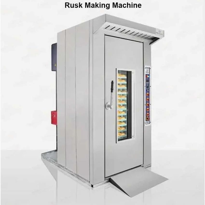 Automatic Electric Rusk Machine for bakeries. Features stainless steel roller, 200-300 Kg/h capacity, and dual phase electric power source. Minimum order is 1 piece.