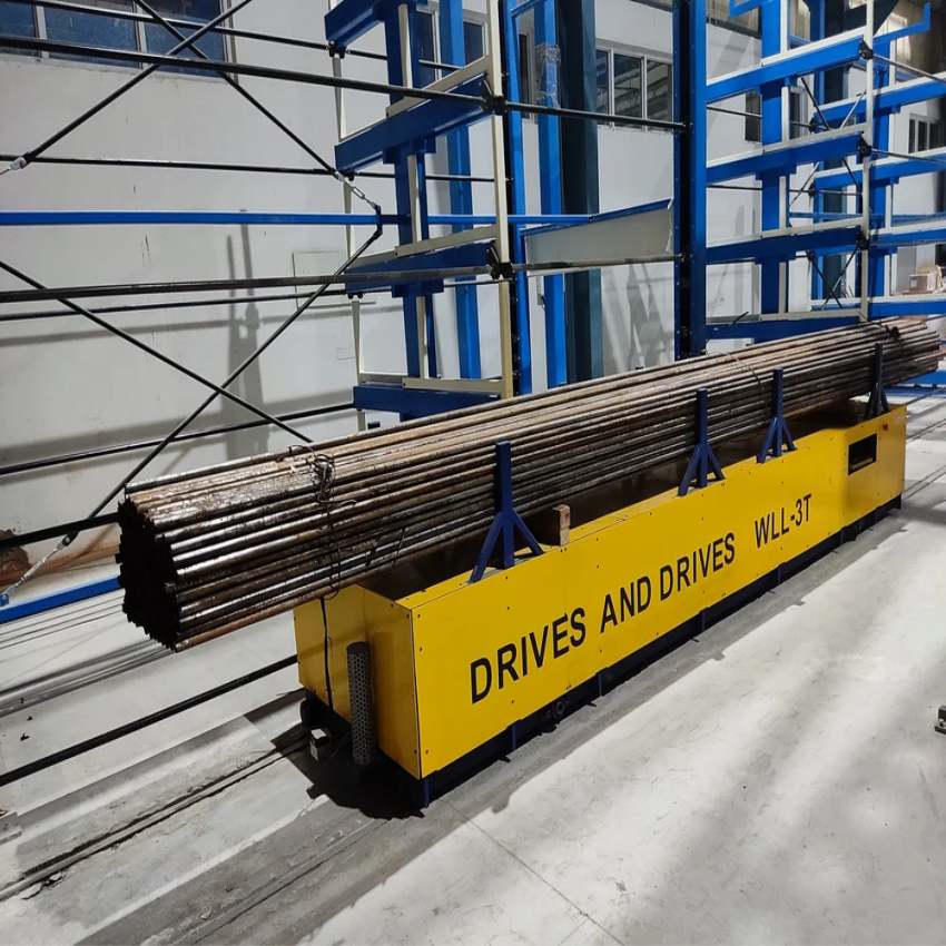 Battery-operated automated guided material handling equipment for steel plants. Features natural laser guidance with a lifting capacity of 1-50 tons and a feeding speed of 7-20 m/s. Includes 1-year warranty.
