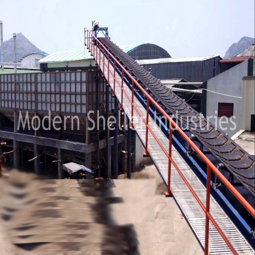 Automatic mild steel/stainless steel conveyor (30-100 ft) for silo/hopper feeding. Capacity 3-30 Tons/Hour. Belt width customisable. Made in India.